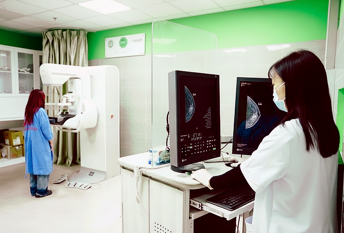 Chụp X-quang vú được coi là “tiêu chuẩn vàng” trong sàng lọc ung thư vú, có khả năng phát hiện các tổn thương nhỏ ngay cả khi chưa sờ thấy được – Ảnh: BVCC