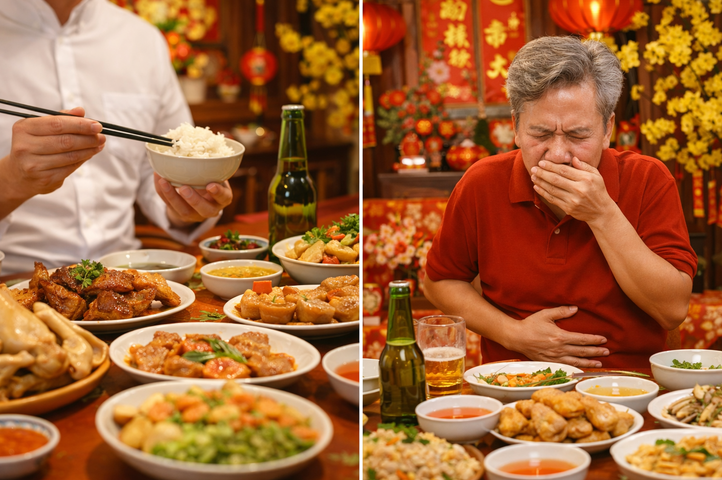 Với những người có bệnh lý nền như viêm dạ dày, trào ngược, gan nhiễm mỡ, tiểu đường hoặc rối loạn mỡ máu, việc kiểm soát ăn uống cận Tết càng trở nên quan trọng. Chỉ cần vài ngày sinh hoạt quá đà cũng có thể khiến bệnh tái phát, khiến Tết trở thành khoảng thời gian điều trị thay vì nghỉ ngơi.